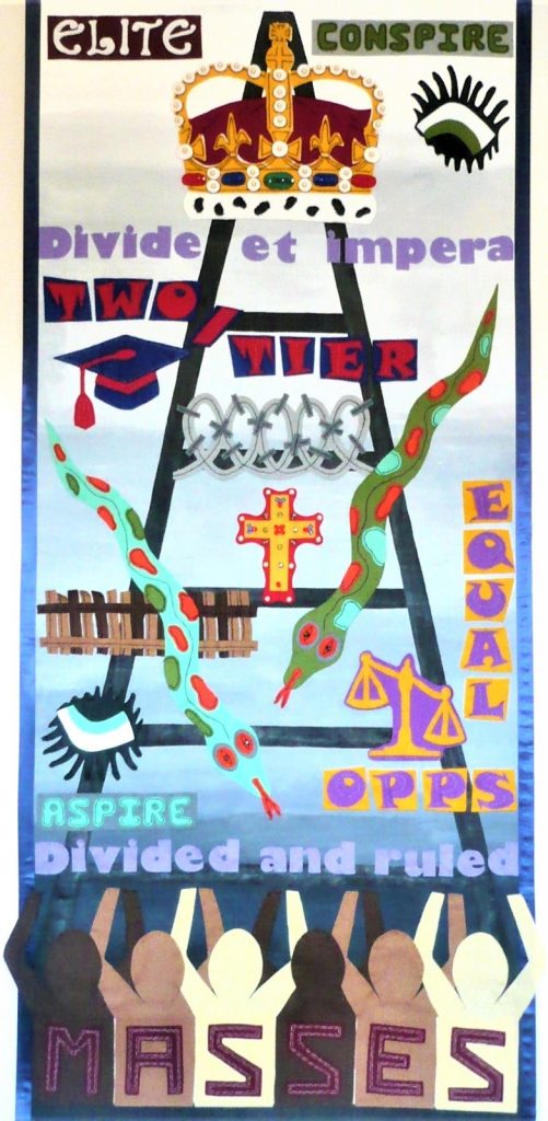 The pattern in the hierarchy of power relations is universal in that even in a first world country, there is an increasingly impoverished permanent underclass separated from the rich elite.  The vertical pyramid structure is therefore mirrored in every modern capitalist society where equality and compassion are valued less and less.  The hierarchies of gender and race cannot be seen in isolation from class and other systems of categorization based on wealth and status.  All such socially and historically constructed oppositions which take on the absolute unquestionable authority of natural fact must be exposed and challenged.