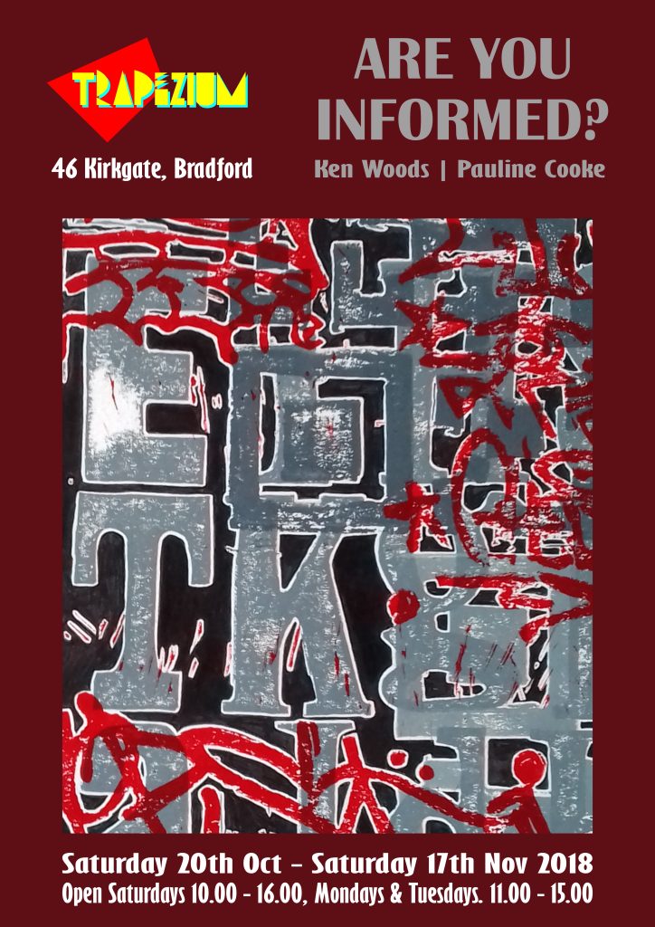 The Evolution of Text (black, white and red print) was accepted and exhibited at the Bradford Open 2019.