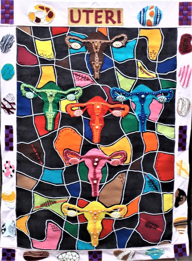 This appropriated image is “a simple diagram that represents the female reproductive system; to explain the relative position of the parts and how they work.”  It is not a direct image like a photograph, or even a realistic copy, but it still represents.  It sits at the boundary of text and image, like a metaphor, bearing a loose symbolism, which is accepted and recognised across cultures.  It can be added to with other symbols and text to show its functions.